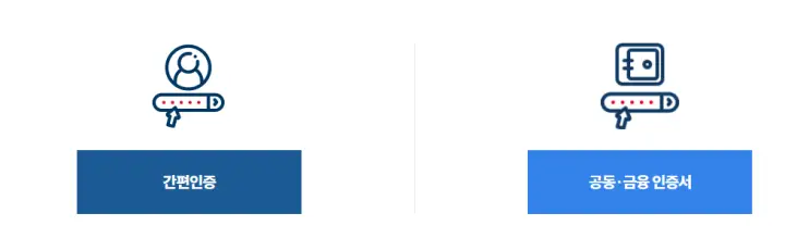 회원 신청하기를 클릭하면 간편 인증 또는 공동 금융 인증서를 클릭해서 본인인증을 할 수 있습니다. 간편 인증으로 했습니다. 간편 인증에서 카카오톡을 선택하고 인증하면 쉽게 인증할 수 있습니다.