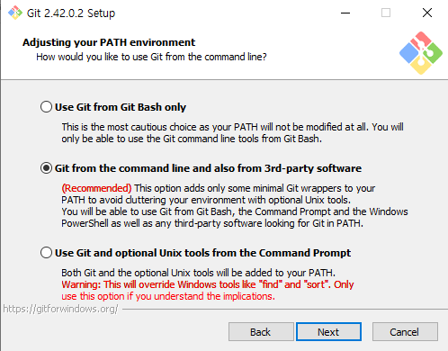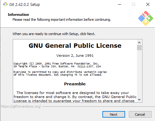 git 설치 버전을 다운로드했다면 설치 파일을 실행하세요.