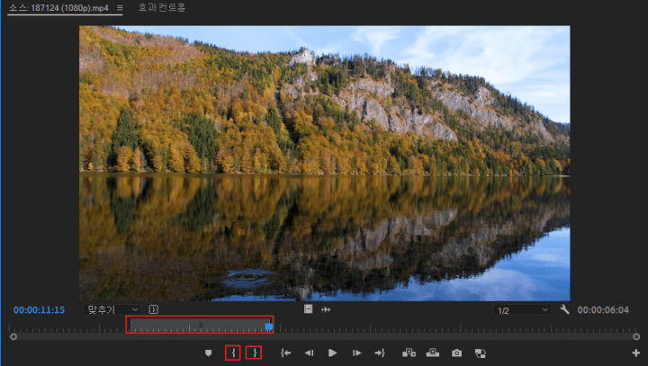 아이콘을 선택해서 시작점과 끝점을 설정하거나 단축키로 설정할 수 있습니다. 단축키가 더 빠르게 작업할 수 있어서 주로 단축키를 사용합니다.