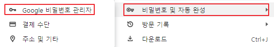 크롬 설정 > Google 비밀번호 관리자 > 비밀번호 및 자동 완성을 클릭하세요.