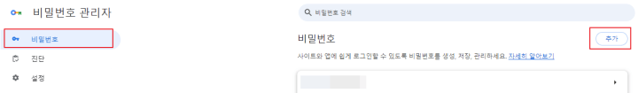 비밀번호를 추가하려면 비밀번호에 있는 추가 버튼을 클릭하세요.