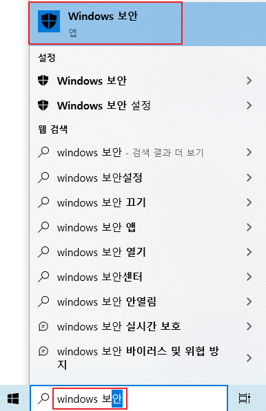 찾기에 windows 보안을 입력하여 해당 앱을 클릭하세요.