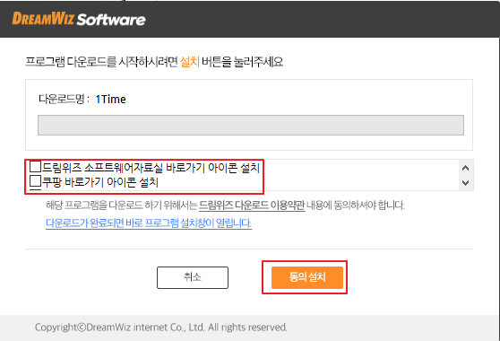 스크롤을 아래쪽으로 내려서 체크 3개를 해제하고 동의 설치를 클릭하세요.